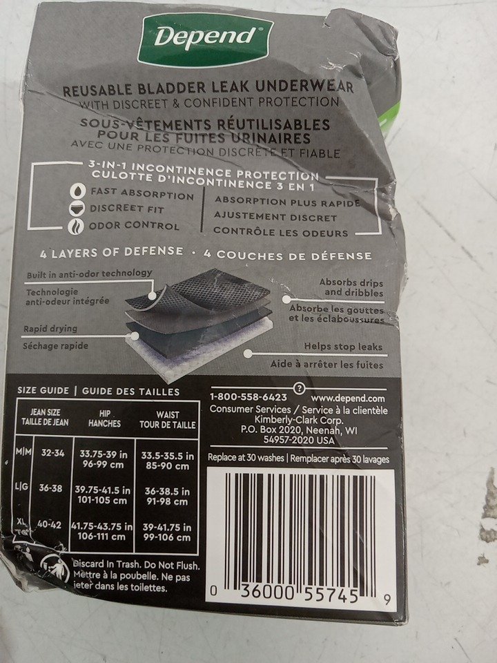 Depend Washable Adult Incontinence Underwear for Men, Reusable, Light Absorbency- Large- Black