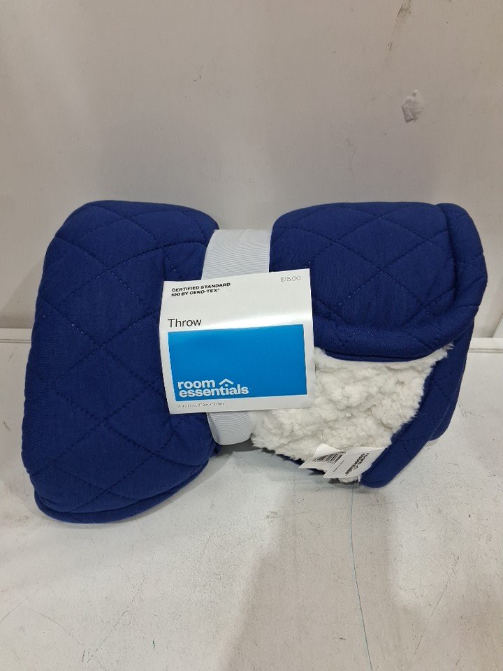 Room Essentials Quilted Jersey Throw Blanket with Faux Shearling Reverse Heathered - 50" X 60" - COBALT BLUE