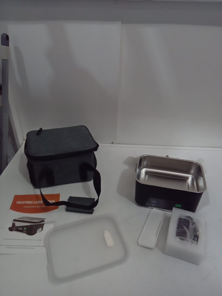 FVW Heated Lunch Box Battery Powered with Automatic Heating with carrying bag - 6.75 cups - 16,000mAh - black/grey (model: hm899)
