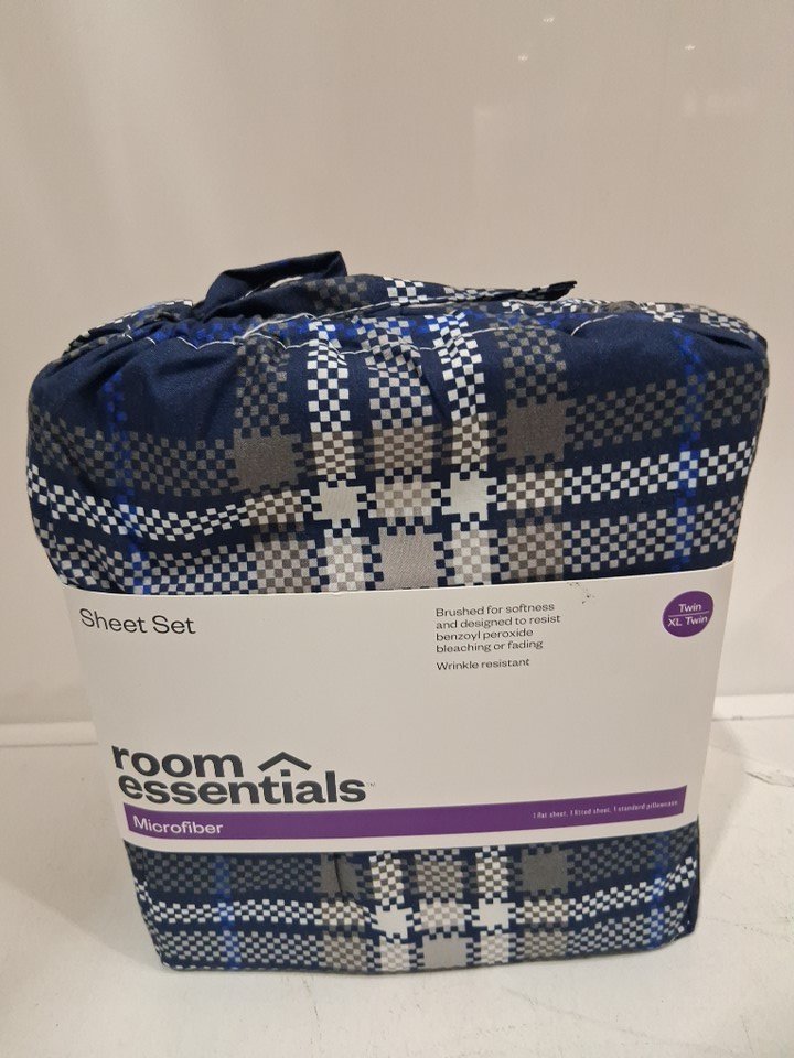 3PC Room Essentials Microfiber Sheet Set - Twin- Blue/Gen Plaid