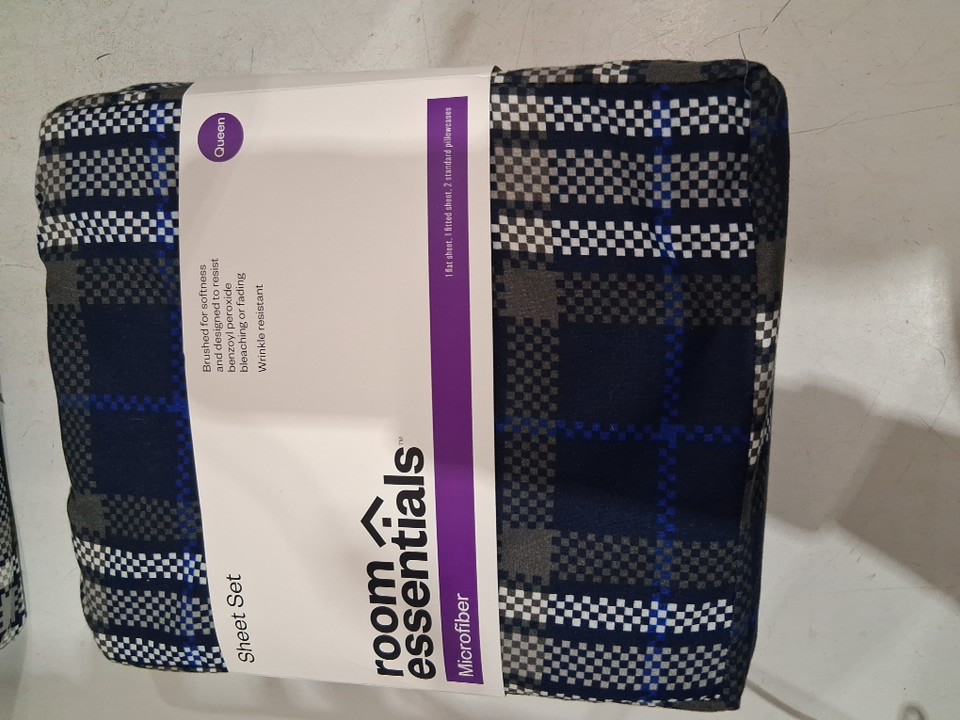 4PC room essentials microfiber sheet set - QUEEN - blue plaid