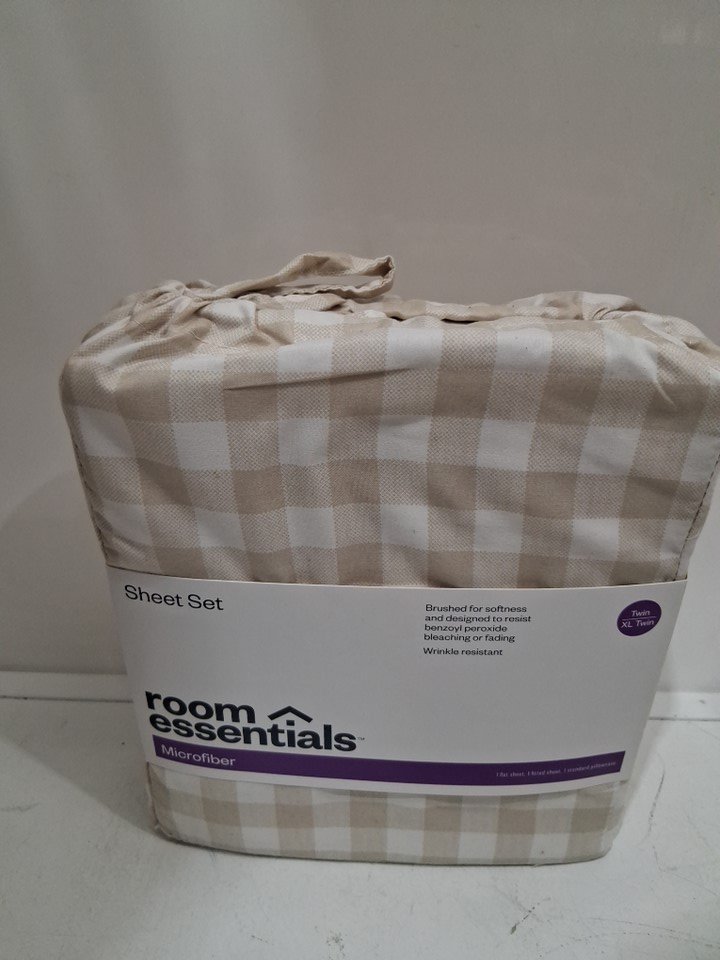3PC Room Essentials Microfiber Sheet Set - Twin - Khaki Gingham