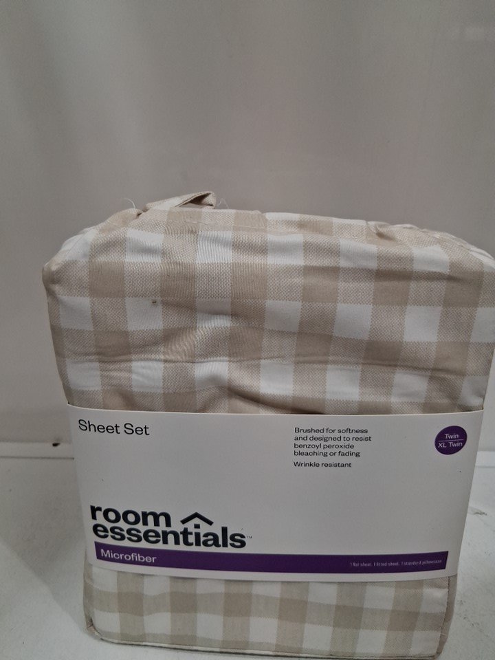 3PC Room Essentials Microfiber Sheet Set - Twin - Khaki Gingham