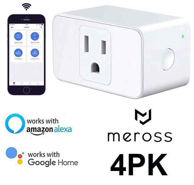 4pk Meross Mini Wi-Fi Smart Plugs - No Hub Needed - Compatible with Google, Alexa - White (model: MSS110)