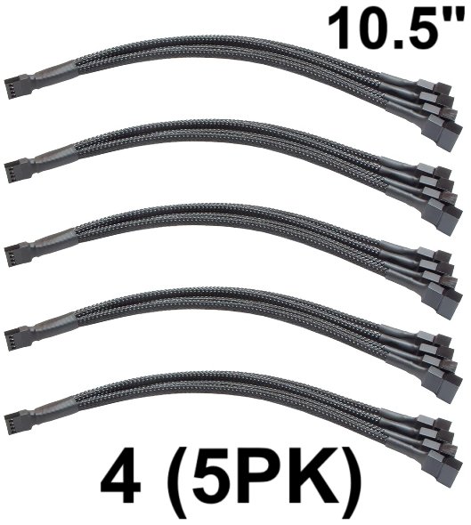 4 (5PK) Buymasters Braided Nylon PC Desktop Fan Splitter Extension Cables - Compatible with 3 and 4 Pin Fans - 20 Total - 10.5" - Black