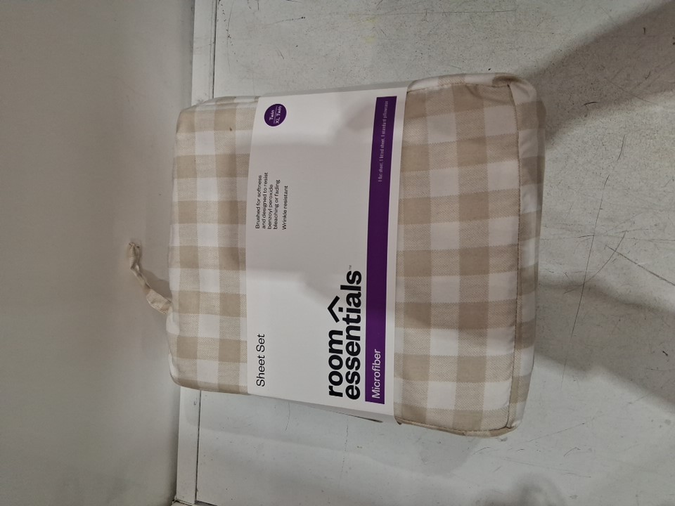 3PC Room Essentials Microfiber Sheet Set - Twin - Khaki Gingham