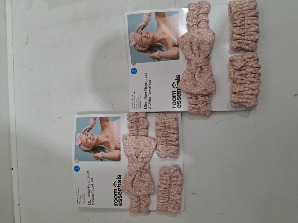 6PC ROOM ESSETIALS microfiber headband wrist towel SET - Polka Dot/Pink