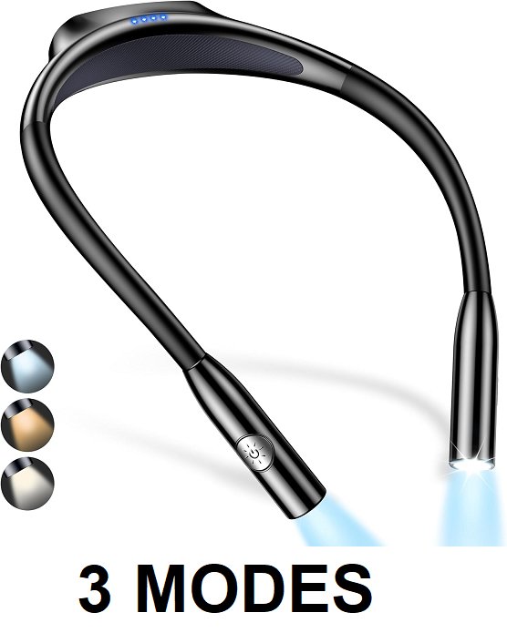 Gritin Lightweight LED Neck Reading Light with 3 dimmable modes - black - (model: g1328)