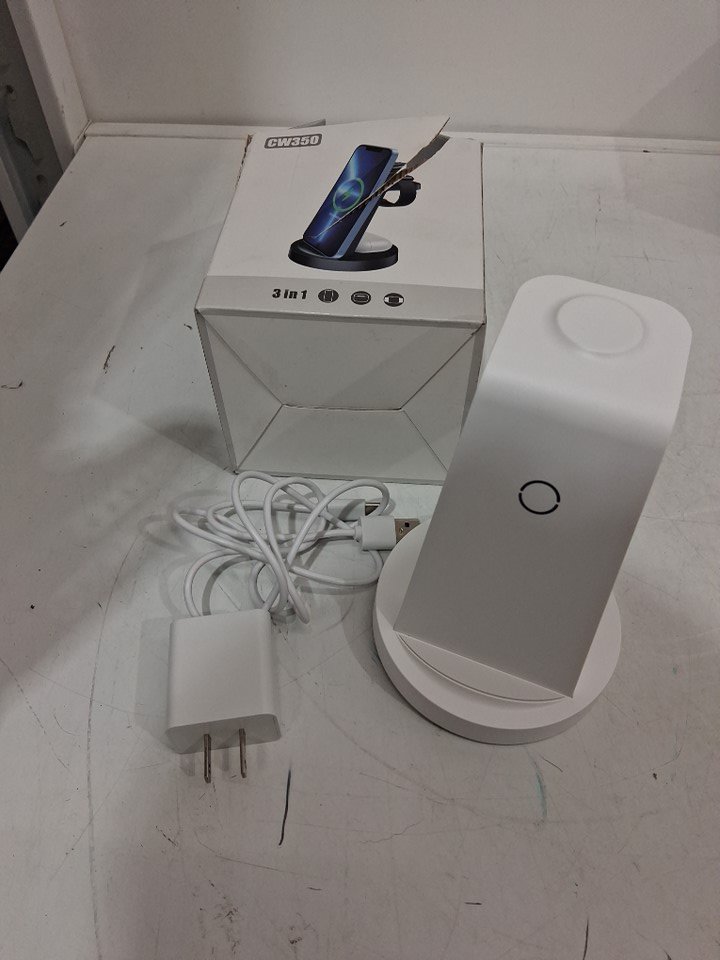 Anlmz 3-in-1 Charging Station for Apple iPhone, Airpods, and Apple Watch - 18W Fast Charging with Adapter - WHITE (Model: CW350)