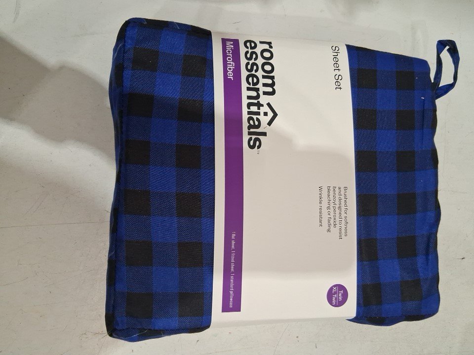 3PC room essentials microfiber sheet set - TWIN/EXTRA LARGE TWIN - blue buffalo check