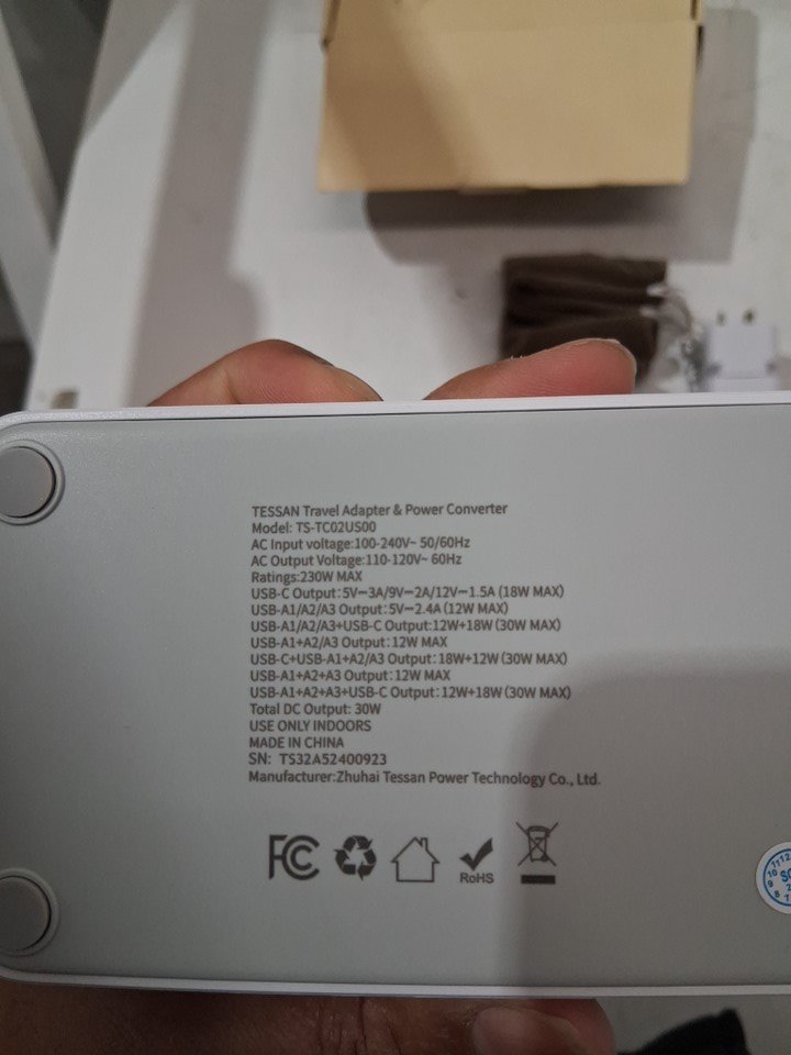 TESSAN Universal Travel Power Adapter Combo with International Plug (Type C/G/D/I/L), 2AC 4 USB Ports (1 USBC), 230W Max Step Down Transformer for US to Europe - WHITE (MODEL: TS-TC02US00)