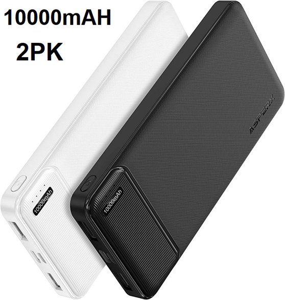 2PK AsperX 10000mAh USB C Output Power Bank - Black/ White (Model:‎HYG003)