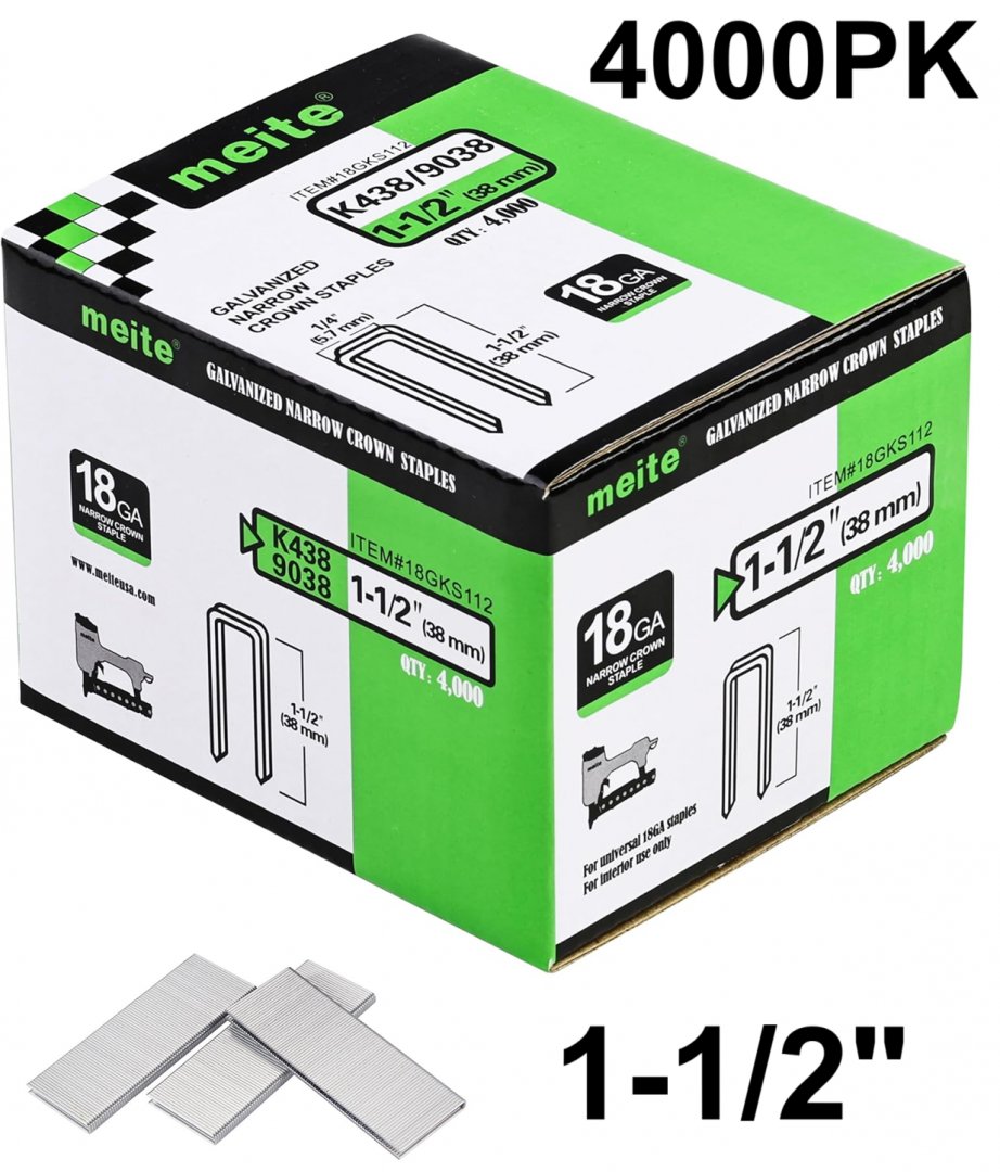 4000PK Miete Galvanized Narrow Crown Staples - 1-1/2" (Model: 18GKS112)