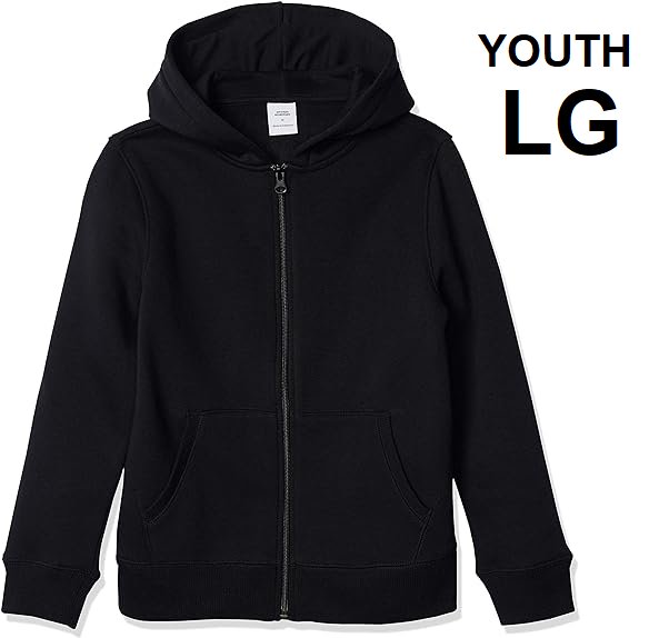 BOYS' AMAZON ESSENTIALS FLEECE ZIP-UP HOODIE - Youth large - black (style: bae50012fl18)