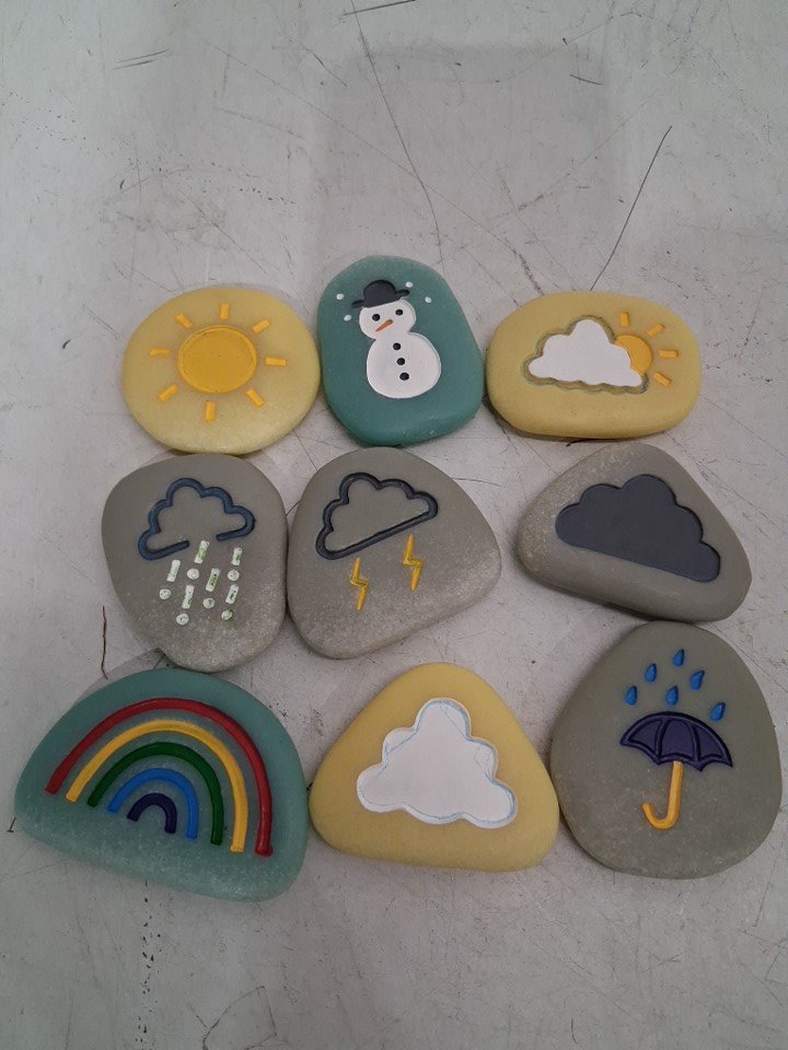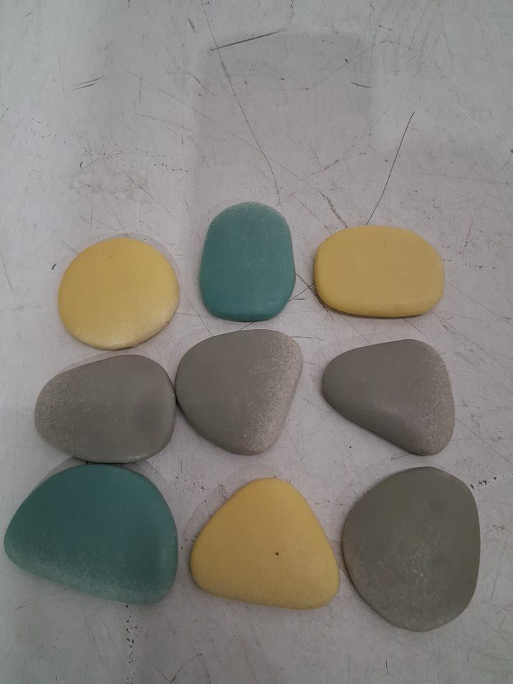 Some weather damage to the stones, and 3 stones have been drawn on. Also missing one of the stones.