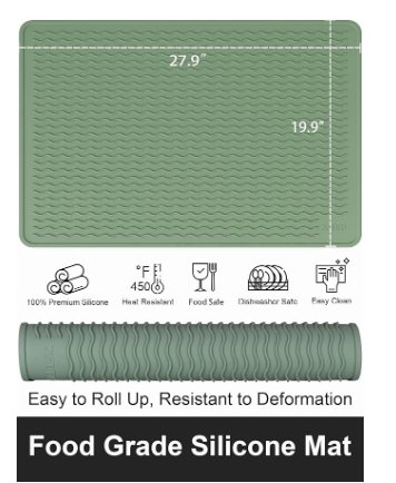XIFEO Food Grade Heavy Duty Silicone Glass Stove Top Cover Protector - 28" X 20" - GREEN