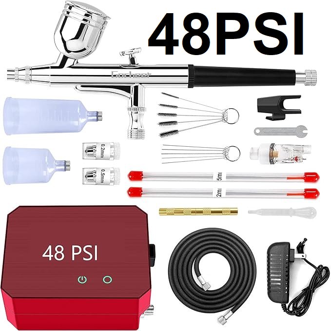 Gocheer Airbrush Kit with Air Compressor - 48 PSI - red