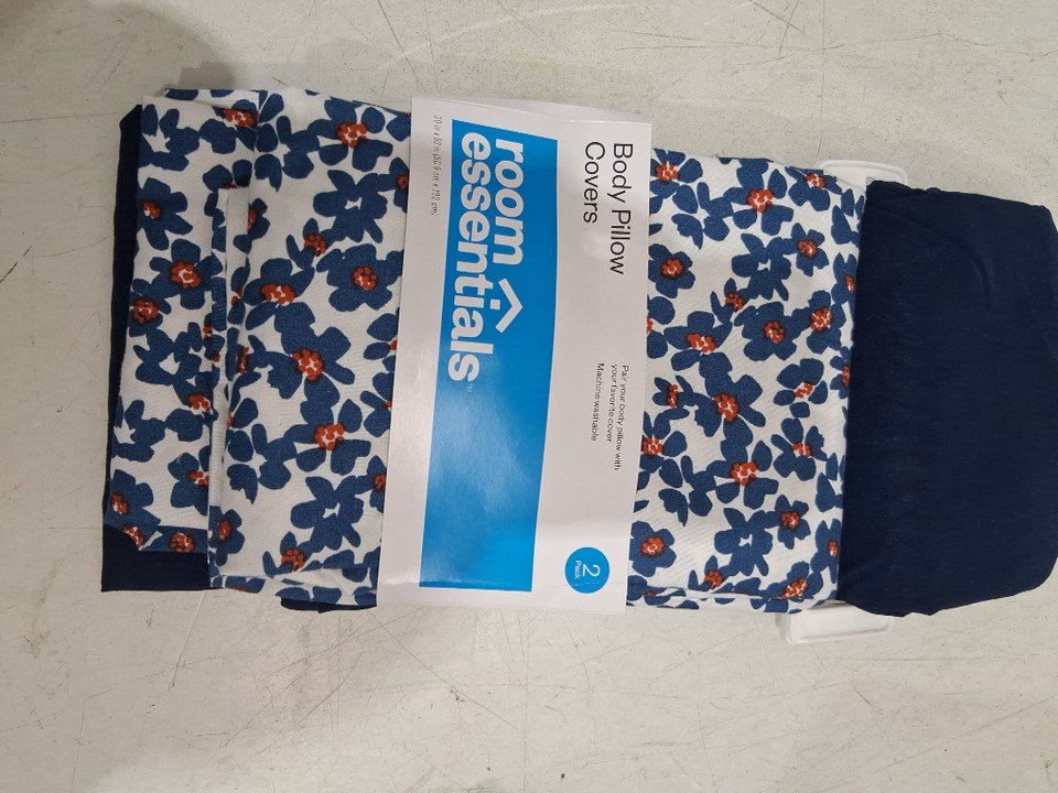2PC Room Essentials Microfiber Body Pillow Cover - 20" X 52" - NAVY /FLORAL