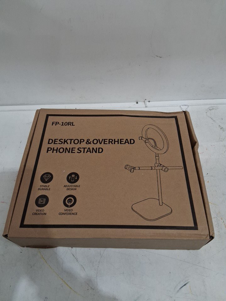 desktop and overhead phone stand with ring light - black (model: fp-10rl)