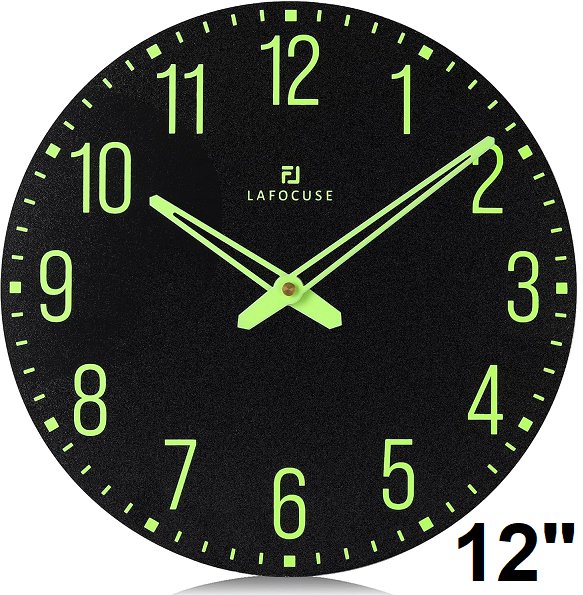 Lafocuse non-Ticking Glow in The Dark Wall Clock - 12" - black/green