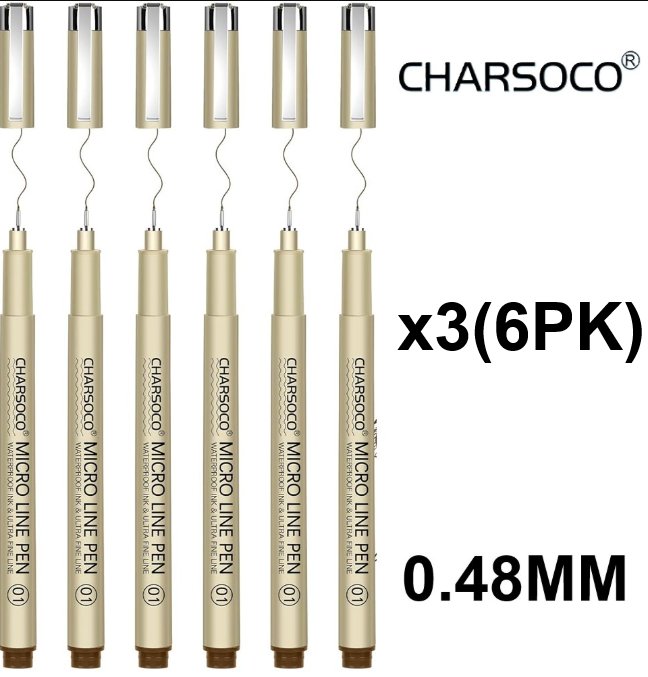3(6PK) CHARSOCO Micro Fine Point Pen waterproof archival ink – 05/0.48mm – black (Model: 802-6-05-Black-CA)