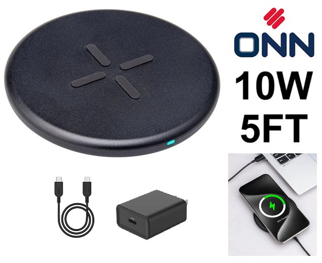 onn wireless charging pad case friendly - 10w - 5ft - black (model: wiablk100139814)
