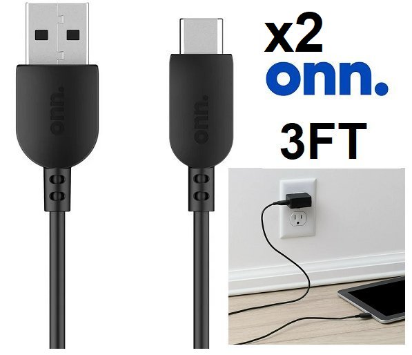 2 onn. Hi-Speed Certified USB-A to USB-C Cable, Transfer while Charging cords - 3ft - black