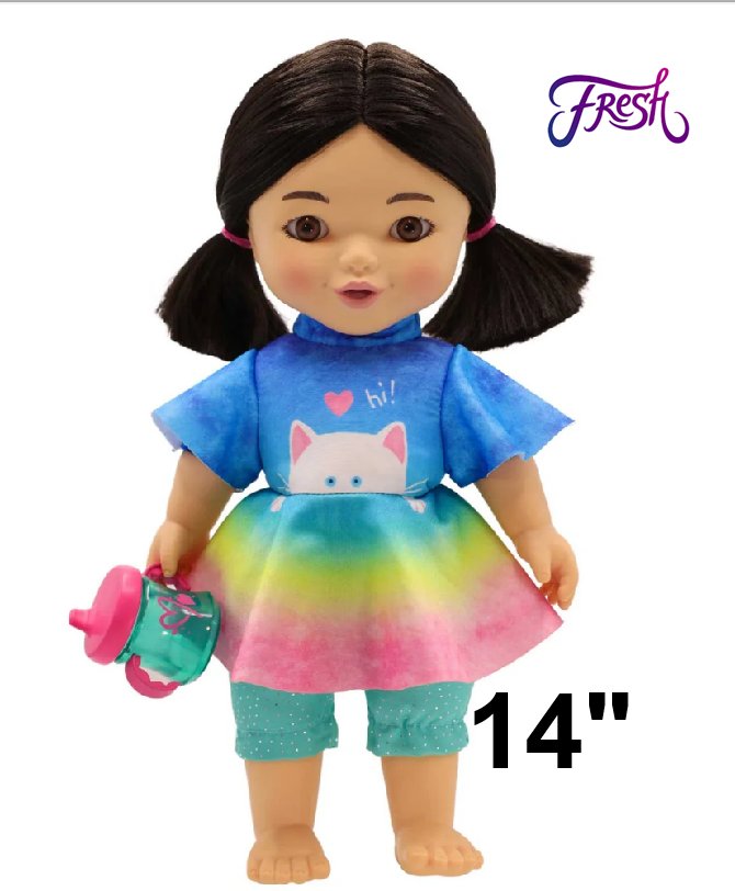 Fresh Dolls Positively Perfect Xile Toddler Doll, Multi-Cultural African American Doll with Natural Hair & Huggable Soft Body - 14"