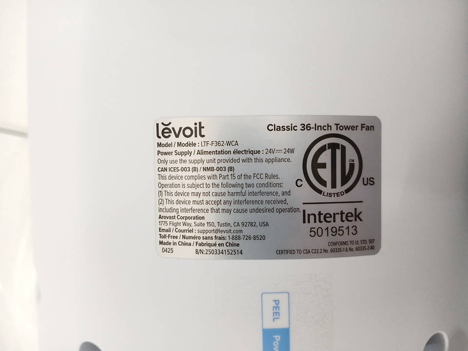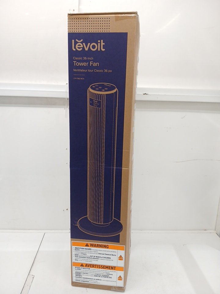 levoit classic smart tower oscillating fan with remote and 24 hour timer - 36" - black/white (model: LTF-F362-WCA)