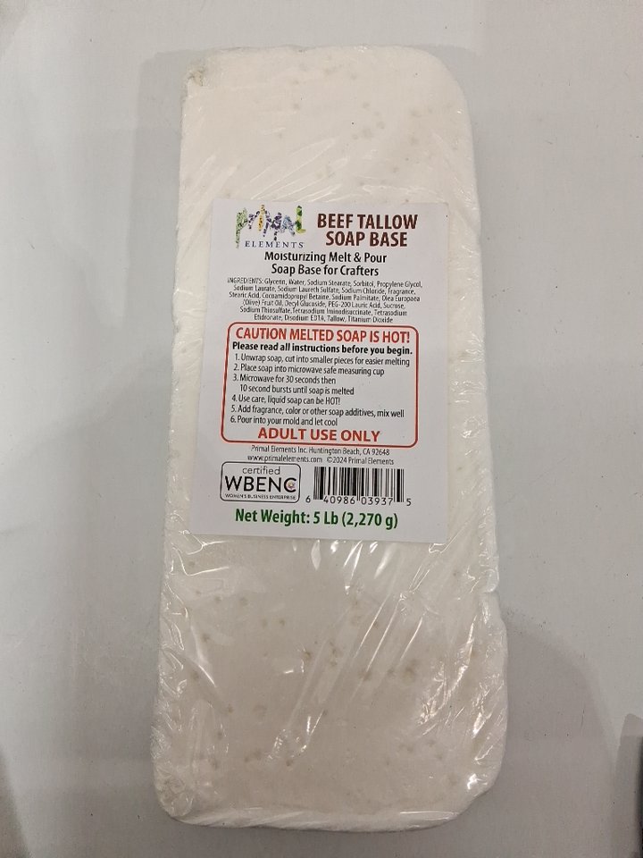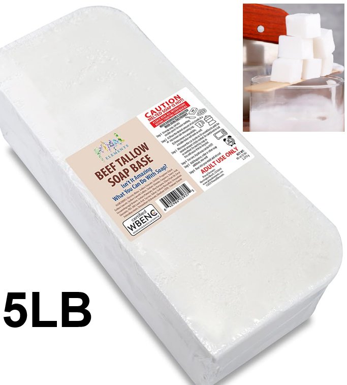Primal Elements Beef Tallow Soap Base Melt and Pour Glycerin Base for Crafting and Soap Making - 5LB