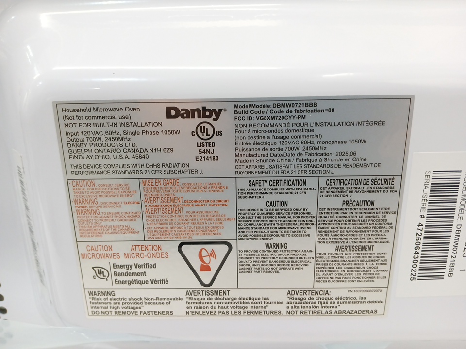 Danby Countertop Microwave - 0.7 cu.ft - 17" x 12" x 10" - Black (Model: DBMW0721BBB)