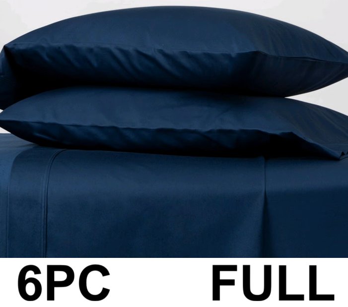 6PC Threshold Hotel Sateen Sheet Set - 800 Thread Cotton - QUEEN Dark Blue