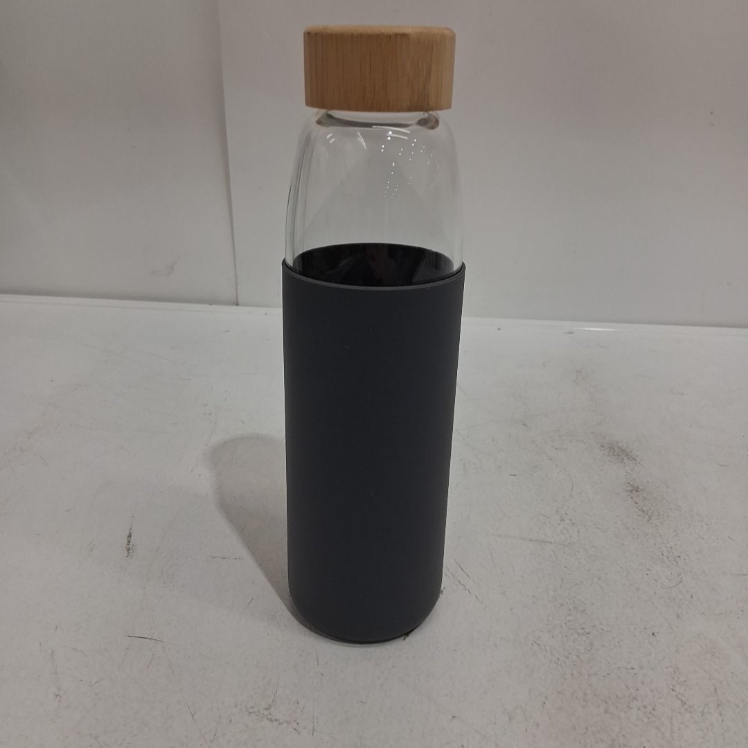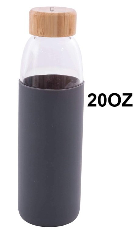 Point-Virgule Borosilicate Glass Drinking Bottle with Leak-proof Bamboo Cap - 20OZ - dark grey(model: PV-LIV-7102)
