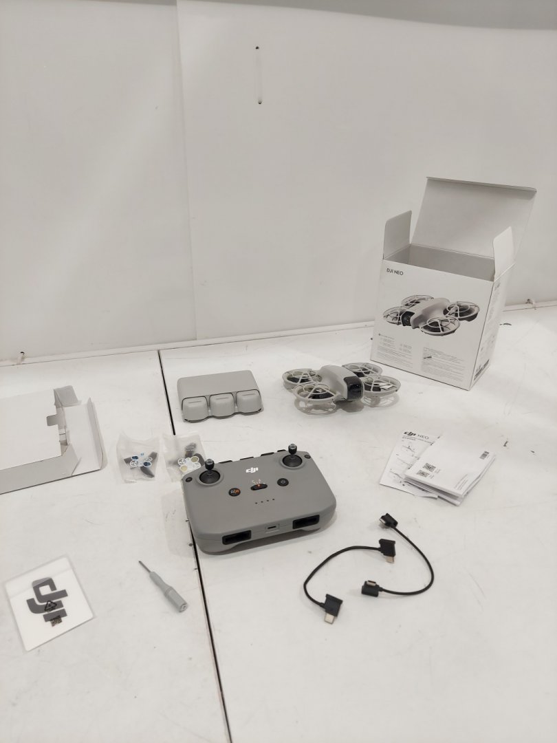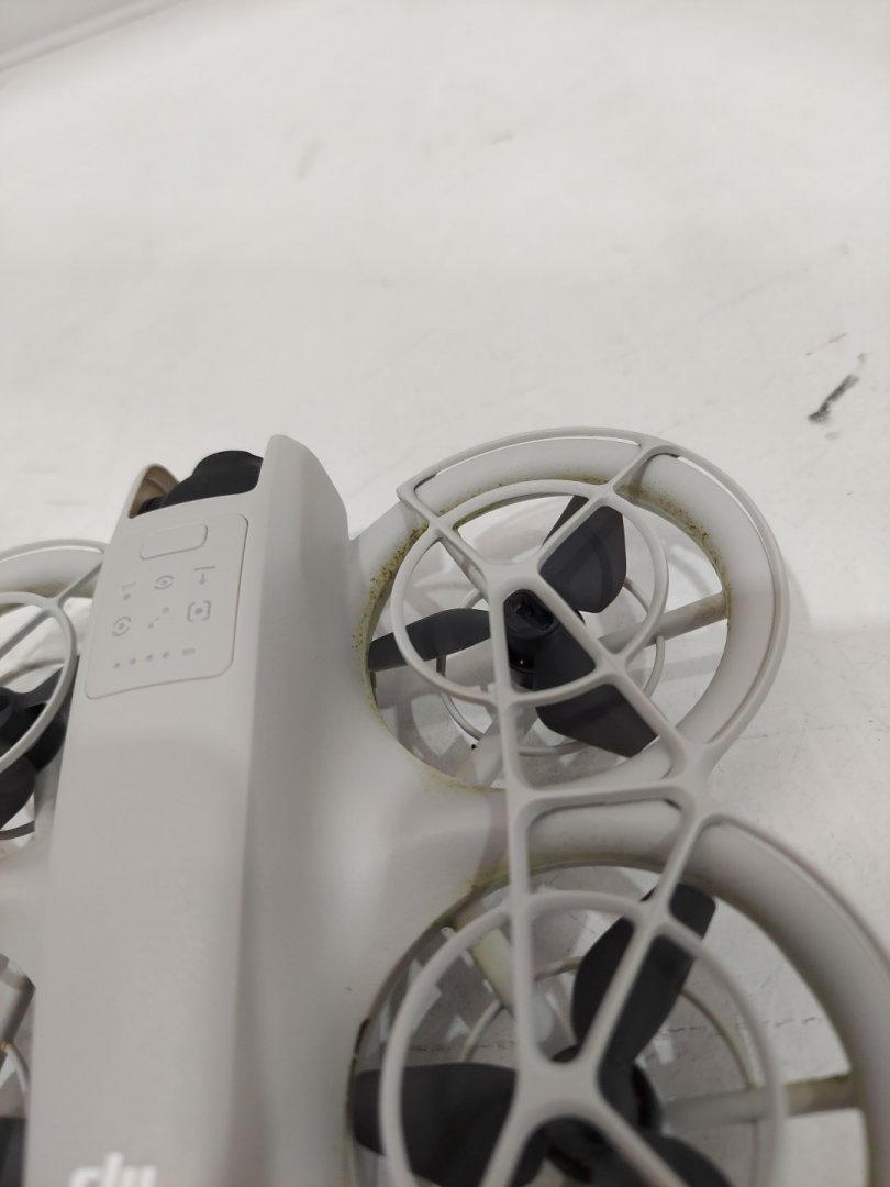Item arrived with clear signs of prior use. there are minor cosmetic scuffs on parts of the item and area around the spinning blades shows signs of wear but nothing that should effect use. tested for power and function with app, camera and flight controls.