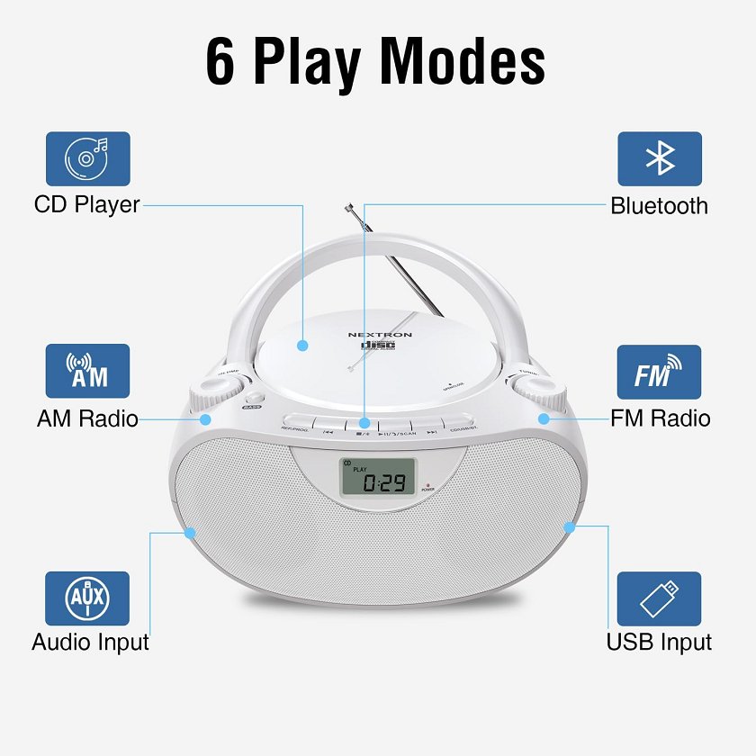 Nextron Portable Stereo CD Player Boombox with AM/FM Radio, Bluetooth, USB, AUX-in, Headphone Jack, CD-R/RW and MP3 CDs Compatible, Clear and Full Sound with Bass Boost, AC/Battery Operated - blACK - (Model: CB-500BT)