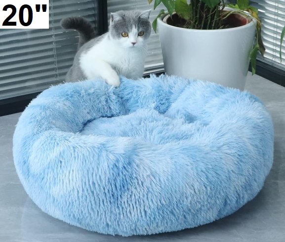 bvagss Calming Plush Washable Round Fluffy Pet Bed, 20" - Gradient Blue