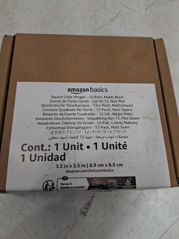 12PK AMAZON BASICS SQUARE DOOR HINGES - 3.5" x 3.5" - MATTE BLACK (model: ‎AB-DH549-MB)