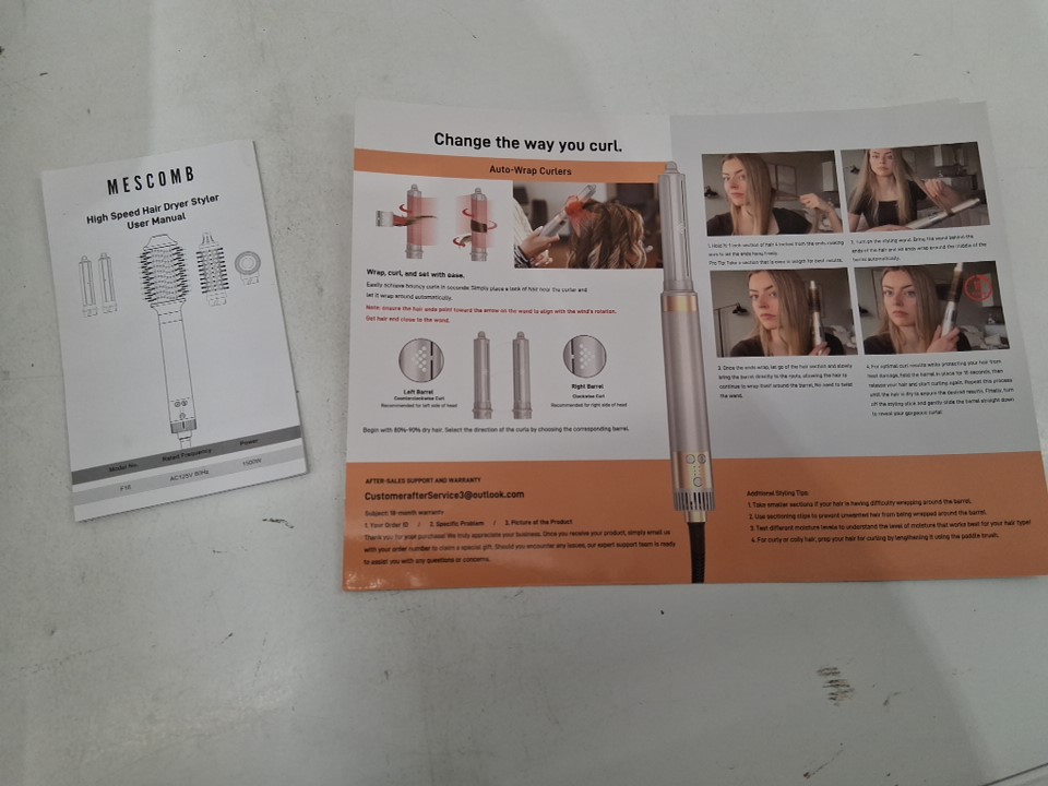 There is a small amount of hair stuck in the brush heads indicating previous use, but all parts appear present and in good condition - see photos. Tested for basic power.