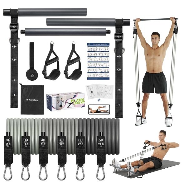 alongsong pilates Reformer bar kit with resistance bands - 20LBS - 240LBS - BLACK (MODEL: Asef017ge)