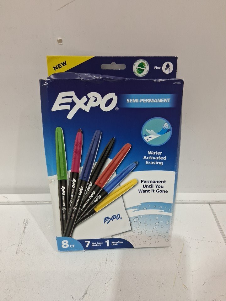 8PC EXPO Wet Erase Semi-Permanent Markers - Fine Tip - MULTICOLOR