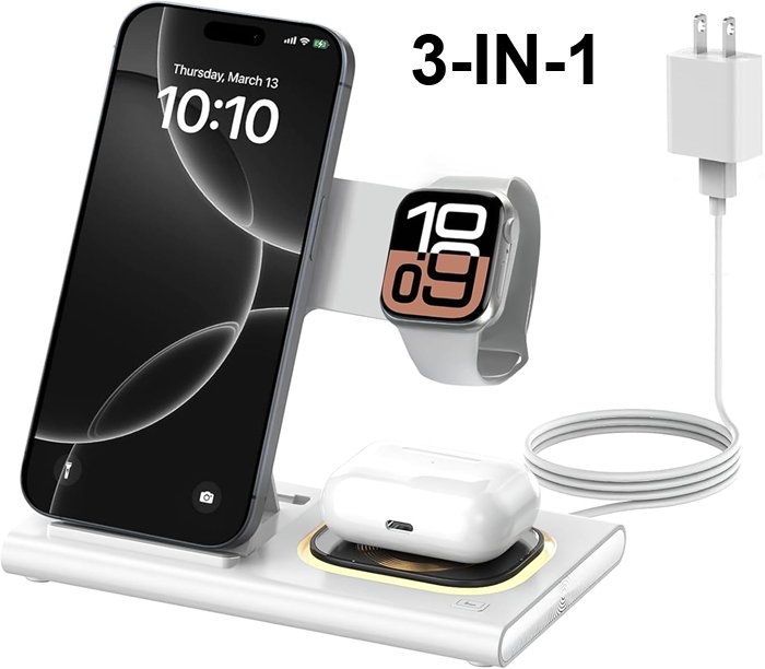 iFull 3-in-1 Foldable Wireless Charging Station - Compatible with Apple Devices - 15W - white (Model: A80)