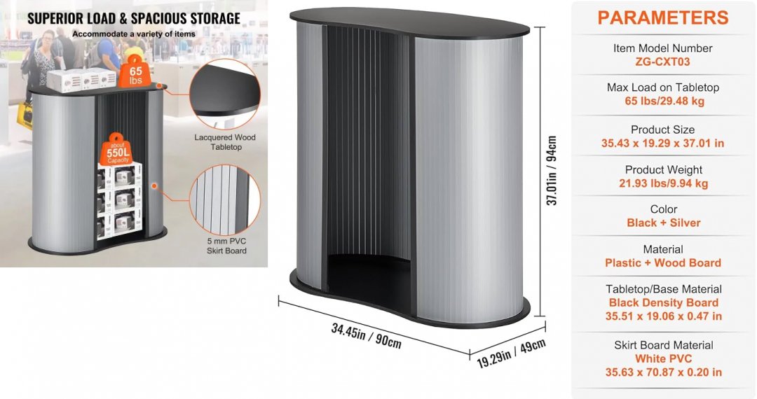 VEVOR Portable Tradeshow Podium Table/COUNTER WITH CARRY BAG - black/silver (model: zg-cxt03)
