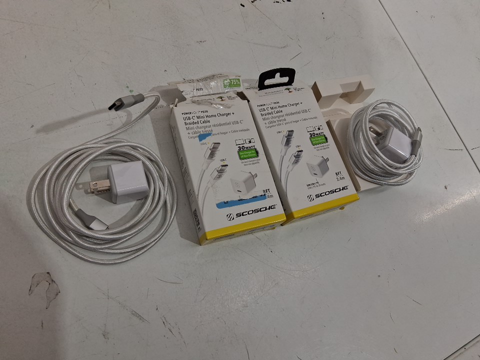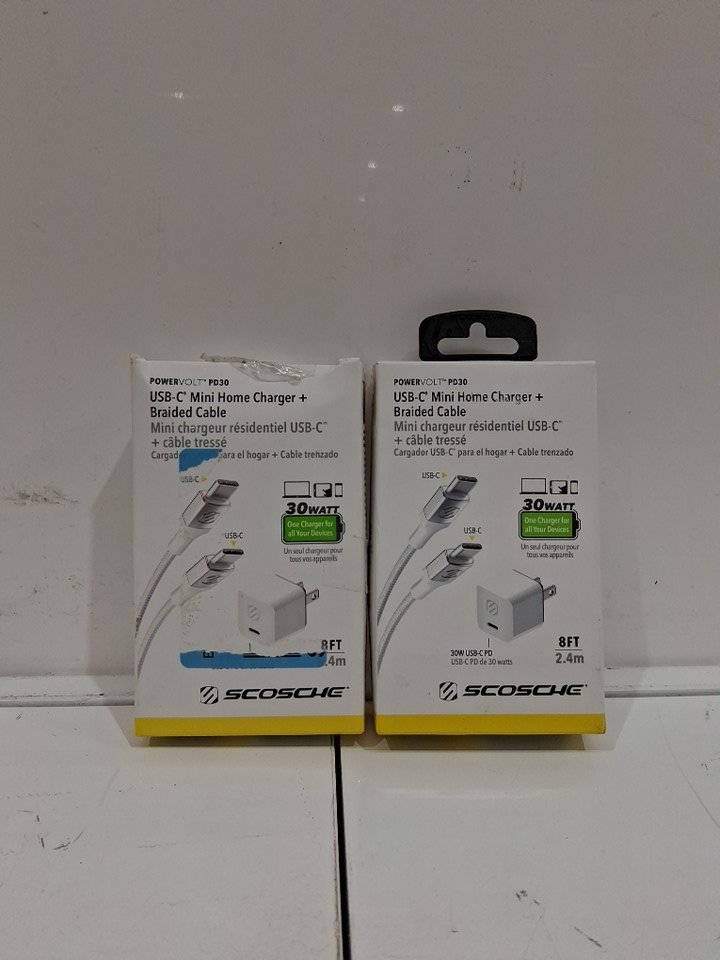 2pk Scosche Powervolt™ Mini Wall Charger with USB-C to USB-C Braided Cable - 30w - 8ft - White/Silver - (Model: HPD30CCB8W-SP)