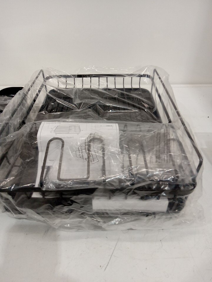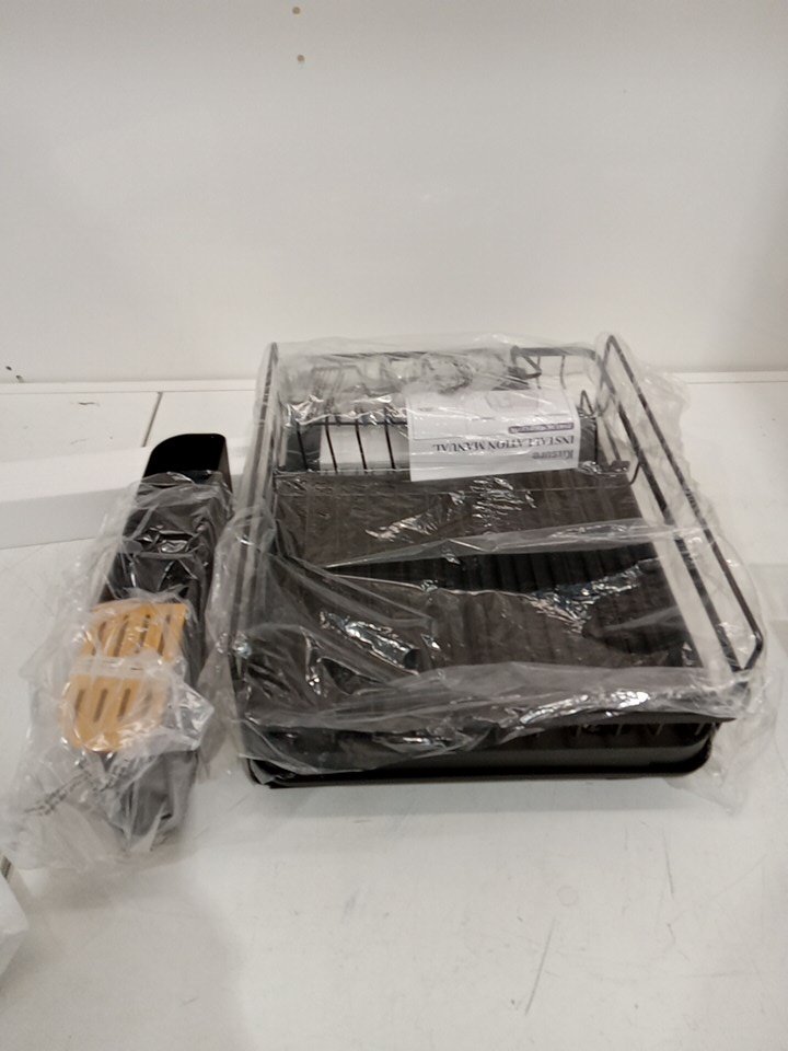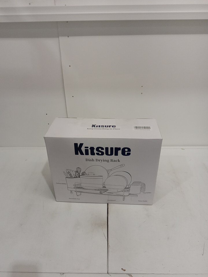 kitsure anti-rust extendable dish drying rack with cutlery and cup holders - 19" to 27" - black (model: ‎463)