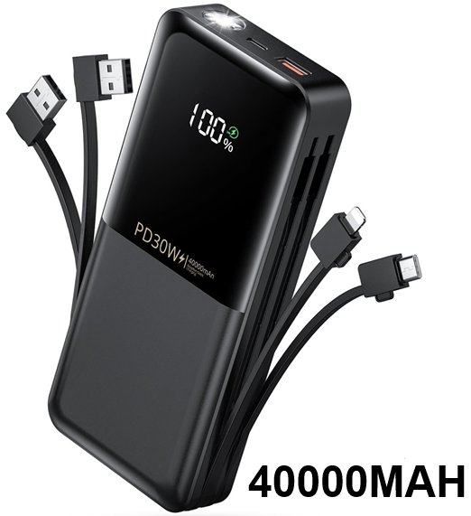 QISA SAFE SPEED Power Bank Portable Phone Charger WITH BUILT IN FLASHLIGHT - 40000mAh - BLACK (MODEL: K20 Pro)