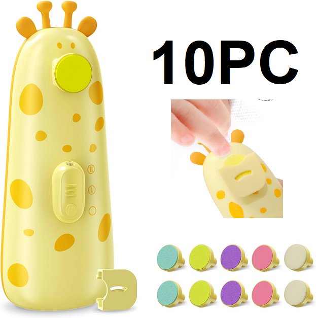 MEGAINVO ELECTRIC BABY NAIL TRIMMER W/ 10 GRINDING HEADS -yellow/ giraffe