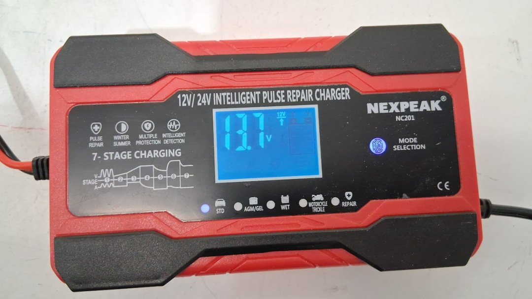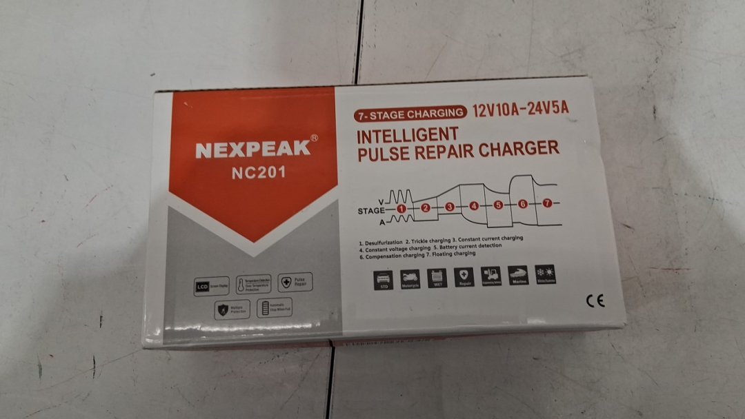 nexpeak nc201 7-stage intelligent pulse repair vehicle charger - 10amp - 12v/10a to 24v/5a - red (model: rj-c121001a)