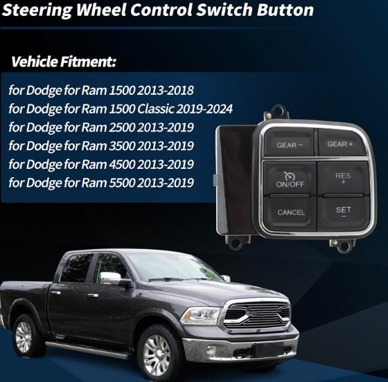 Steering Wheel Cruise Control Switch Button Right Side - for DODGE Ram 1500 2500 3500 4500 5500 2013-2018 - BLACK (MODEL: 68111384AA)