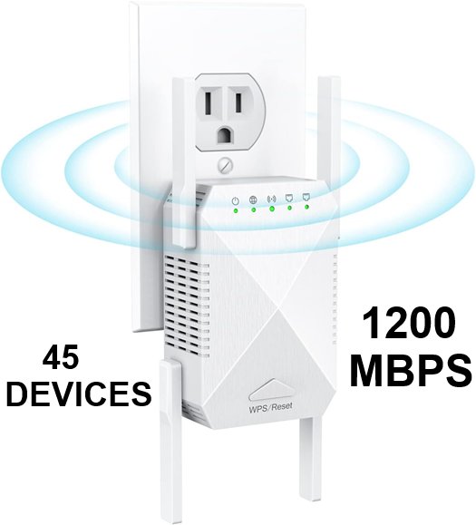 Edtiske WiFi Fastest Booster Dual Band Extenders Signal for Home - 1200MBPS, 5GHZ/2.4GHZ, UP TO 10000SQ. FT, 45 DEVICES - WHITE