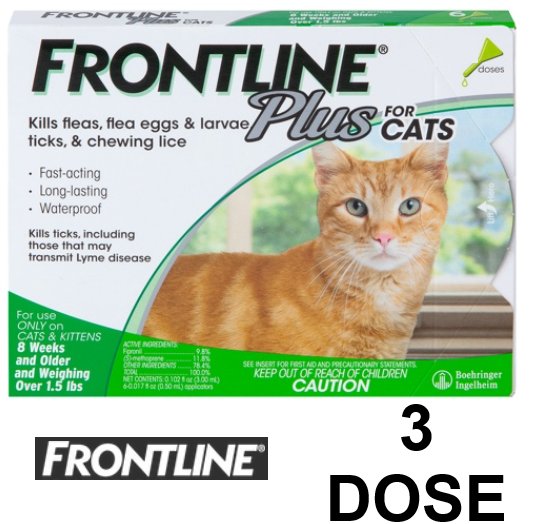 (3 DOSE) FRONTLINE Plus Flea and Tick Treatment for Cats Over 1.5lbs